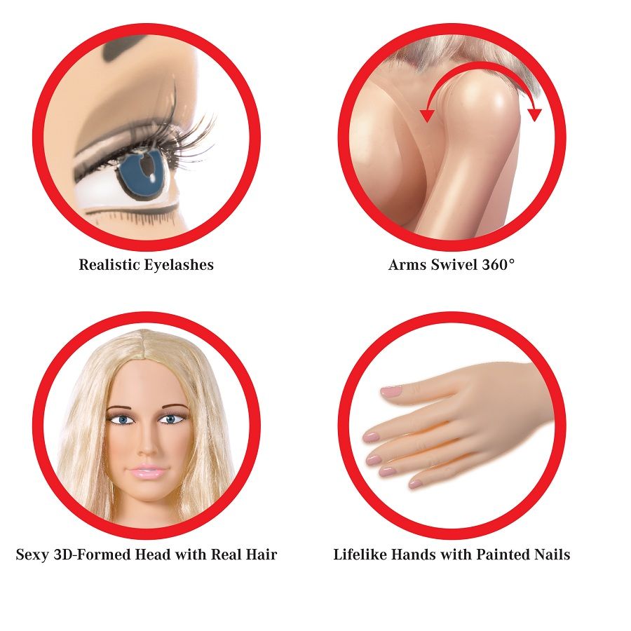 Diese unglaubliche aufblasbare Puppe in Lebensgröße wurde sorgfältig mit realistischen Merkmalen für ein wahrhaft realistisches Erlebnis entworfen. Ihr attraktives 3D-geformtes Gesicht wird durch eine üppige Haarpracht abgerundet, die nur darauf wartet, zurückgekämmt zu werden. Mit ihren kecken Brüsten können Sie ihre superweichen und echten Brustwarzen genießen. Ihre Vagina und ihr Hintern sind eng und sehr realistisch