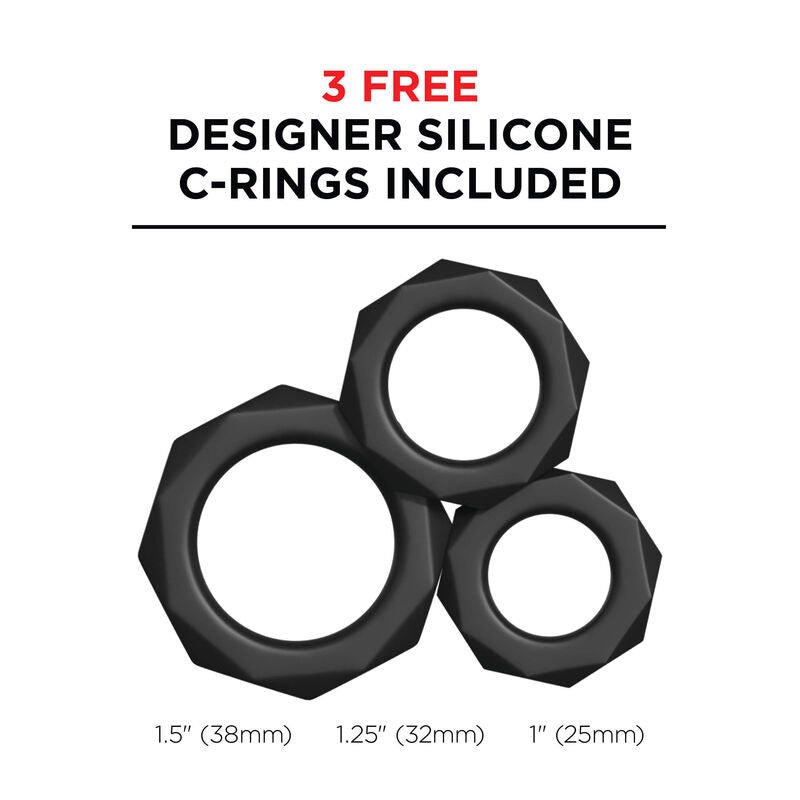 Der interne Schubmechanismus ist vollständig im Inneren verborgen und verfügt über zwei metallene Greifringe um die Hülle, die den Schaft stoßen und drücken. Jeder Ring ist mit einer Reihe von Lustperlen ausgekleidet, die den Schaft auf und ab rollen, während sich die superweiche TPR-Hülle um jeden Zentimeter des Penis legt. Der wiederaufladbare Motor bietet Profi-Leistung mit zwei intensiven Bewegungsgeschwindigkeiten, drei leistungsstarken Saugmodi und fünf aufregenden Vibrationsmustern, die Sie verrückt machen werden.
