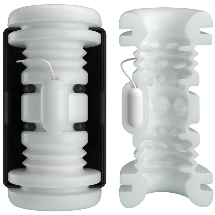 Genießen Sie tiefes und befriedigendes Vergnügen mit diesem Masturbator-Cup mit Vibration und mehreren Geschwindigkeiten. Dieses fantastische Männerspielzeug bietet Ihnen ein Erlebnis, das weit über das Übliche hinausgeht. Dank seines einzigartigen Klemmdesigns können die Cups auf beiden Seiten manuell zusammengedrückt werden, um das Vergnügen zu steigern. Ultrarealistische Eintrittspunkte und gerippte und geriffelte Innenhüllen sorgen für ein perfektes Penetrationserlebnis, während das Vibrationsdesign mit mehreren Geschwindigkeiten für maximale Empfindungen sorgt. Genießen Sie den strukturierten Innenkanal, bis Sie einen intensiven Orgasmus erleben.