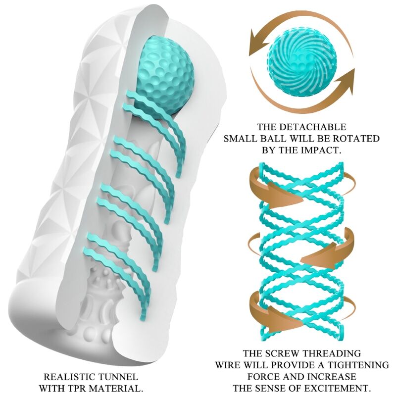 Kleines Tool für gigantischen Masturbationsspaß! Dieser transparente und wiederverwendbare Masturbator verfügt über eine rotierende Spirale und eine seitliche Stimulationskugel. Die rotierende Spirale lässt den Masturbator beim Eindringen rotieren und die Kugel an der Spitze kann die richtige Stelle stimulieren und dir ein neues Gefühl verschaffen. Die Hülle hat innen eine stimulierende und aufregende Textur, die den Penis bei der manuellen Arbeit intensiv und dynamisch massiert. Du kannst diesen stylischen, hautfreundlichen Masturbator immer wieder verwenden. Kinderleicht in der Anwendung und pures Vergnügen!
