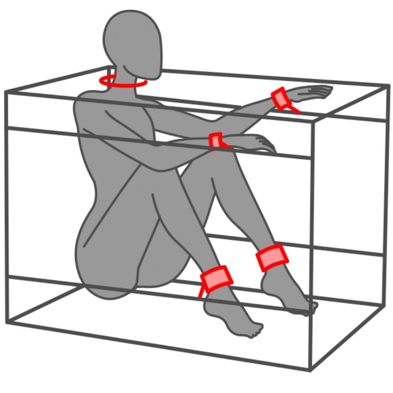 Die mitgelieferten Handschellen und Fesseln verstärken das Gefühl der totalen Hingabe, und die integrierte Matratze sorgt für Komfort in jeder Position. Und wie in jedem Privatclub ist Diskretion wichtig: Wenn Sie fertig sind, wird alles in der eleganten Reisetasche verstaut.